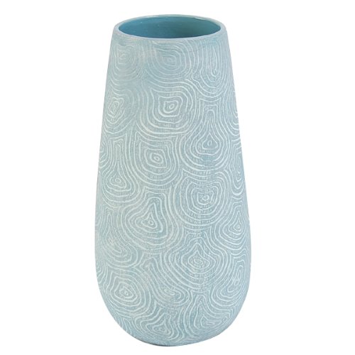 Check Out Handcrafted Flower Terracotta Vase With Sea Blue Swirl Etchings for $59.95