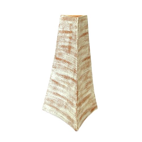 Check Out Handcrafted White Triangular Terracotta Vase With Brushed Sandy Salmon Finish - Triangular Neck for $69.95